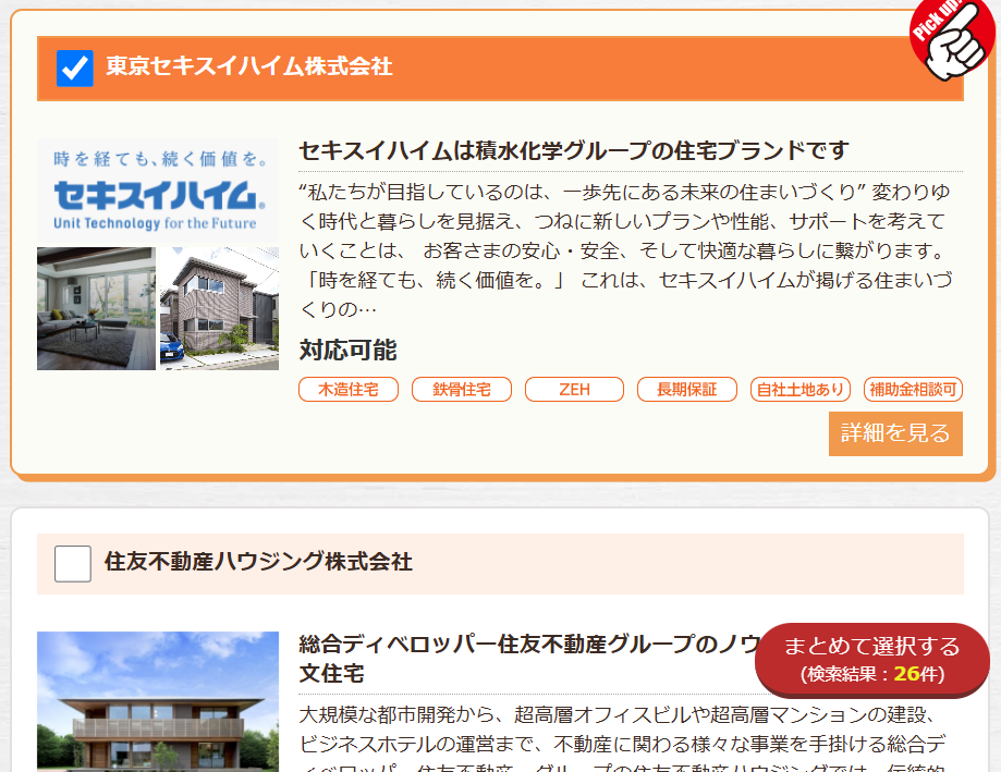 たくさんの会社から提案が来るのは嫌・・・と思うかもしれないですが、なんと、提案して欲しい会社を選択することができるんです!